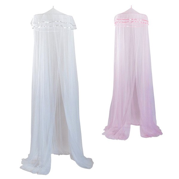 皆があこがれる天蓋カーテン。サテンパイピングがシンプルな中にも華やかさが。適度な透け感で暗くなりません。目が細かいので蚊帳の代わりにも!吊るだけ簡単取り付け! ・サイズ(約) リング径φ66×H280〜300cm ・素材 ポリエステル、スチール ・カラー WH 139096PK 139102 ※本商品は「メール便不可商品」です。