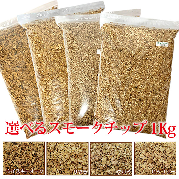 スモークチップ 1kg サクラ/クルミ/ヒッコリー/ウイスキーオーク 燻製用チップ キャンプ アウトドア 自家製燻製