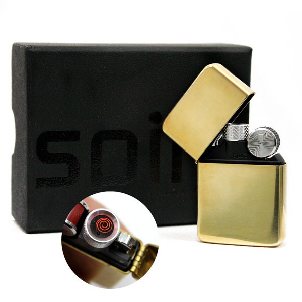 スパイラ バッテリーライター ブラス 真鍮 ゴールドカラー USB充電式 防災 アウトドア キャンプ USB充電