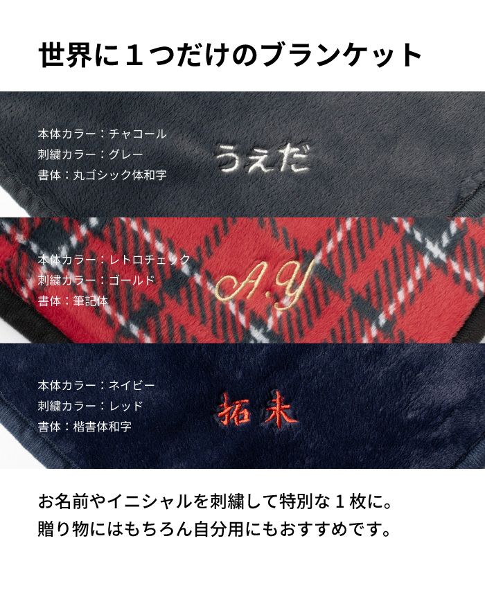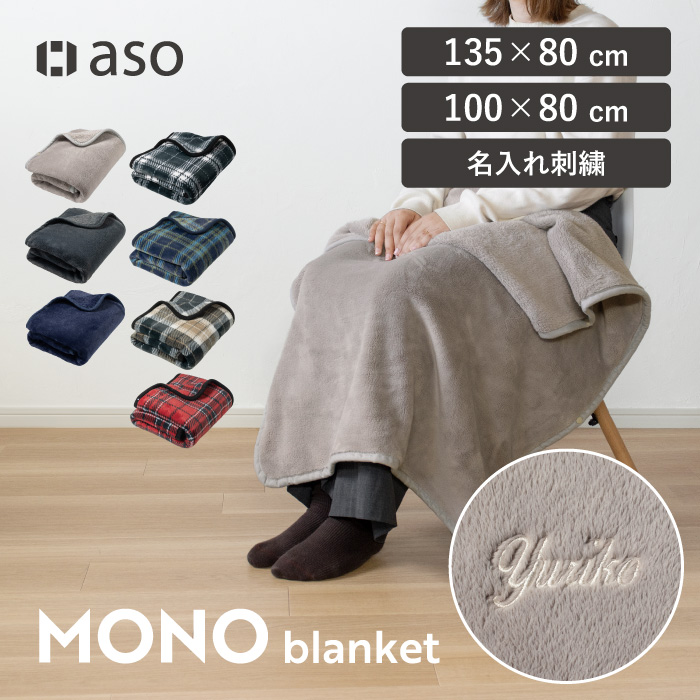 名入れ ブランケット ひざ掛け 刺繍 ハーフサイズ ふんわり ギフトボックス 羽織る 巻く スナップボタン おしゃれ ギフト プレゼント MONO blanket