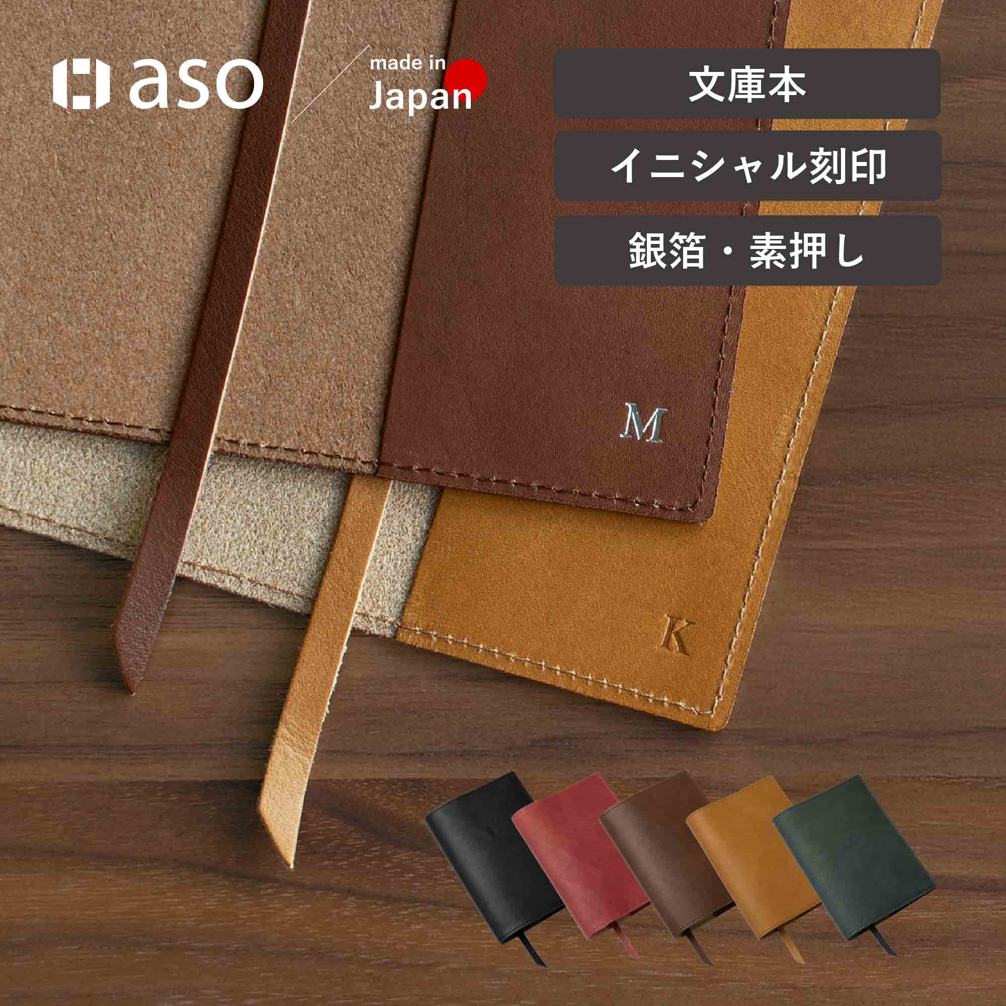 姫路産ブックカバー イニシャル刻印 箔押し 素押し 革 文庫本 日本製 父の日 入学 卒業 送別 a6サイズ ZE-V158
