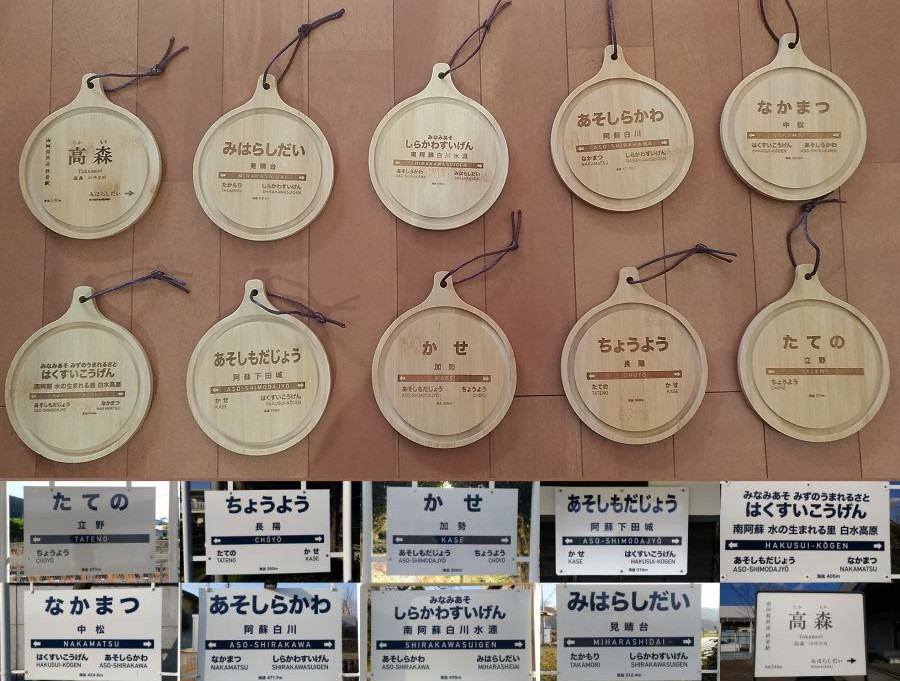 南阿蘇鉄道駅名標バンブートレー全10種類セット(おまけ付き)
