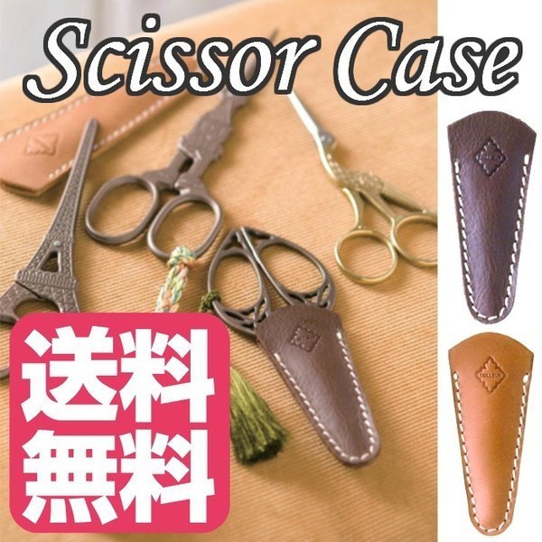 送料無料! シザーケース ブラウン キャメル おしゃれ アンティーク風 ハサミ 鋏 はさみ