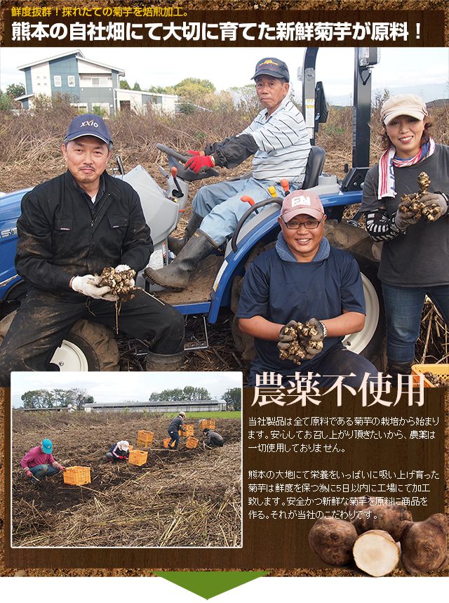 「畑のインスリン」と言われる話題の菊芋を使用。熊本県産100%。