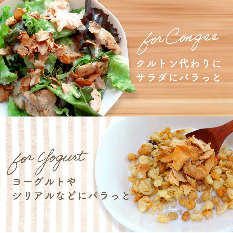「菊芋ポリポリ」よりも細かいチップで、ふりかけにちょうどいい大きさです。