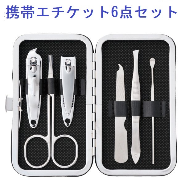 携帯エチケット 6点セット デキる人の身だしなみ 爪切り2種/爪やすり/はさみ他 ハードケース付き ネイルケア