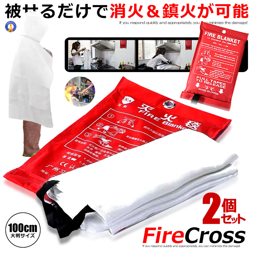 2個セット 初期消火に ファイヤークロス ガラス繊維製 大判布 耐火 火事 火災 防止 防災 緊急時 バーベキュー キャンプ 野外 屋内 キッチン ストーブ FIRECLOTH