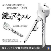 多機能 鍵型 ミニ マルチツール 6つの機能 携帯性 キーホルダー キーリング ステンレス ドライバー 栓抜き 便利グッズ 持ち運び シルバーカラー DL-KEYTUUL