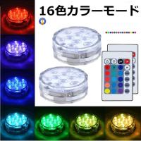 2個セット 水中ライト 潜水 LED 防水マルチカラー電池式 リモコン 操作 無線 10灯 16色発光 LED インテリア お風呂 お庭 花瓶 水槽 金魚鉢 WATERLIGHT