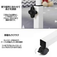 キャスター付きで簡単に移動ができ、テーブルの高さもノブで簡単に調節できます