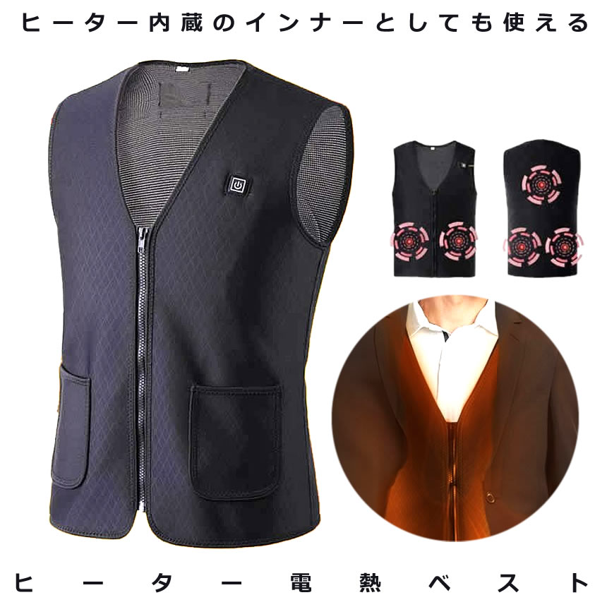 ヒーターベスト Lサイズ 男女兼用 給電式 ぽかぽか あたたかい 電熱 発熱 加熱ベスト お手入れ簡単 アウトドア キャンプ 通勤 通学 USB 屋外作業 SPHTBEST-L