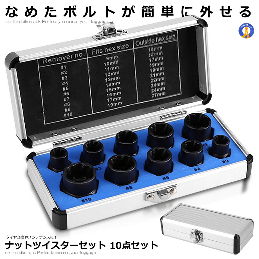 ナットツイスター セット 10点セット 9−19mm ナット外し ボルト外し なめた 錆びた タイヤホイール タイヤ交換 メンテナンス ねじ切り 工具 N整備 ATTUIS