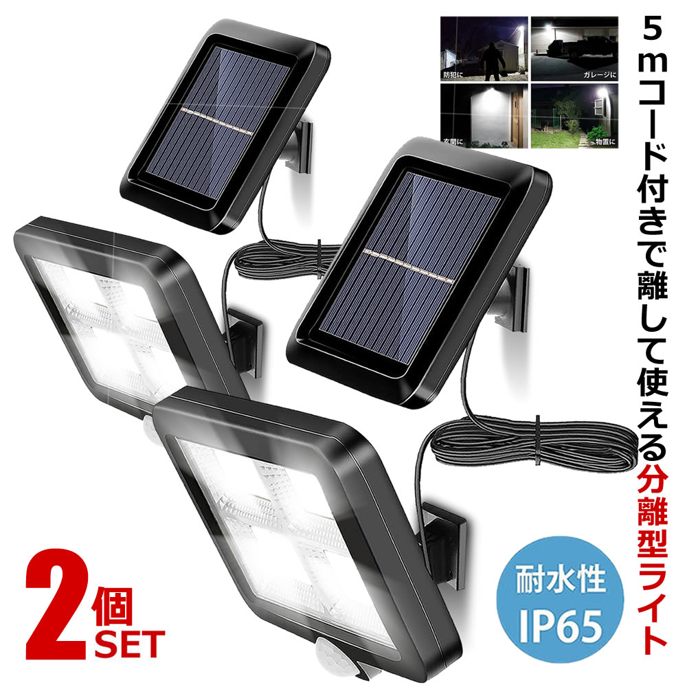 ソーラーライト屋外 2個セット 分離 センサーライト 128LED 屋外 壁掛け 5mコード付き 太陽光充電 モーションセンサー 玄関 駐車場 防犯 庭 ガーデン BUNBUN