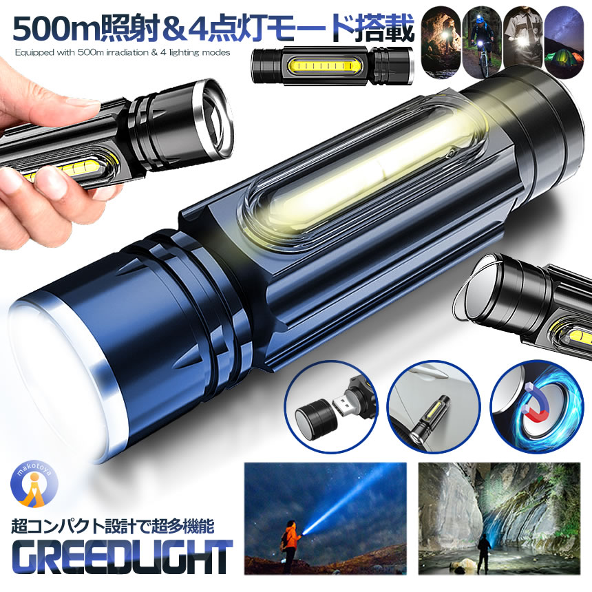 懐中電灯 LED 充電式 ハンディライト 800LM 4つの点灯モード 強力 小型 ズーム マグネット付き 高輝度 夜釣り 登山 ウォーキング 散歩 アウトドア 作業 GREEDLI