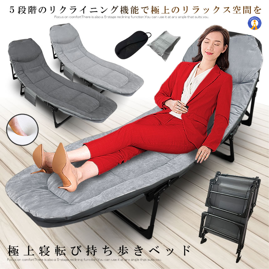 ベッド 折りたたみベッド リクライニング チェア シングル ベッド 5段階 寝転び 持ち歩き クッション 収納 チェア アウトドア GONEMOMO