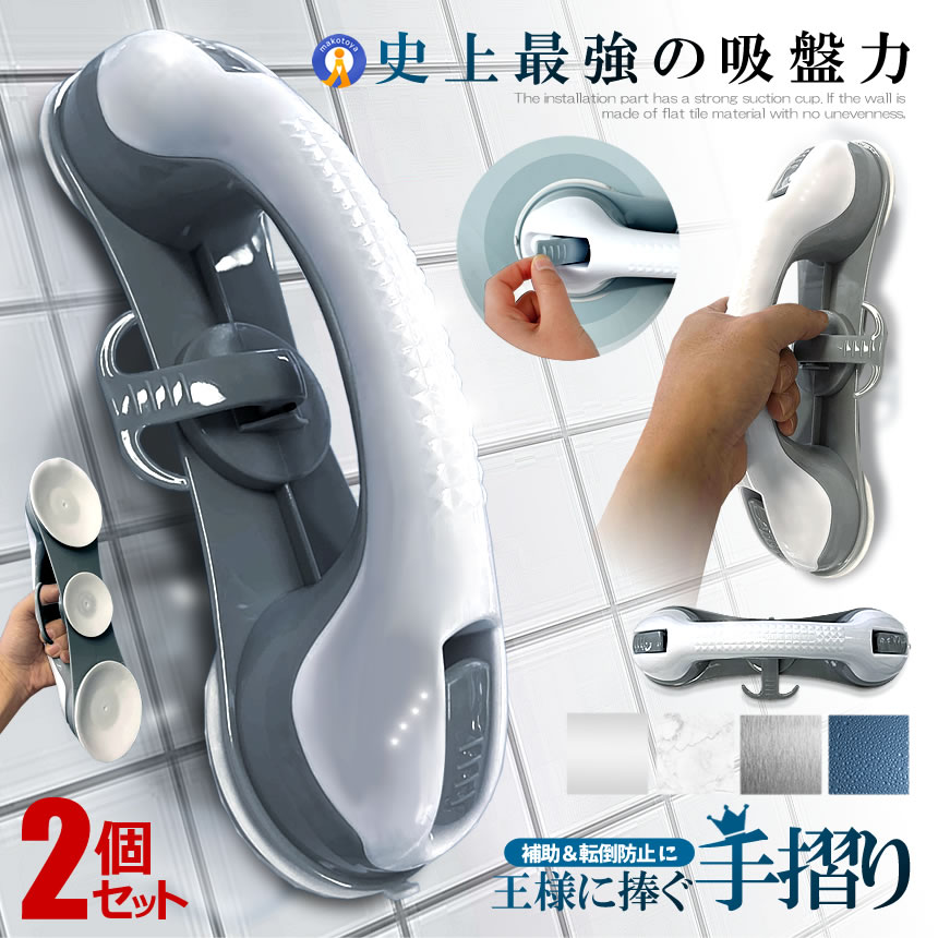 2個セット セーフティハンドル 風呂 手すり 立ち上がり 補助 転倒防止 取っ手 手摺り 浴槽 浴室 吸盤 バス用品 玄関 強力吸盤 高齢者 子供 介護 FS001