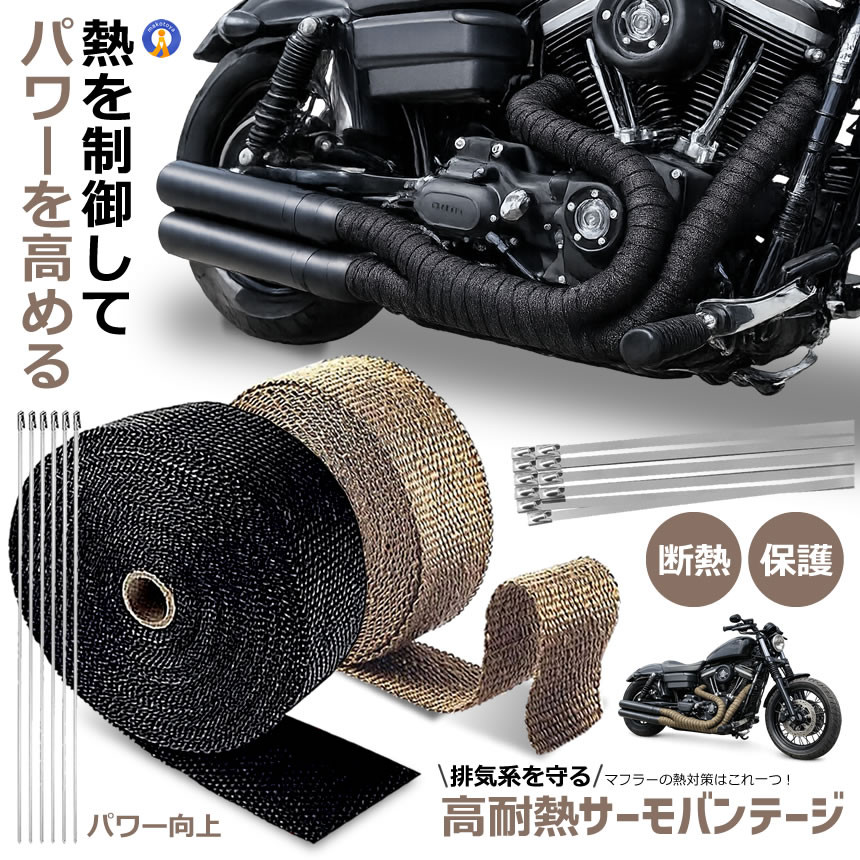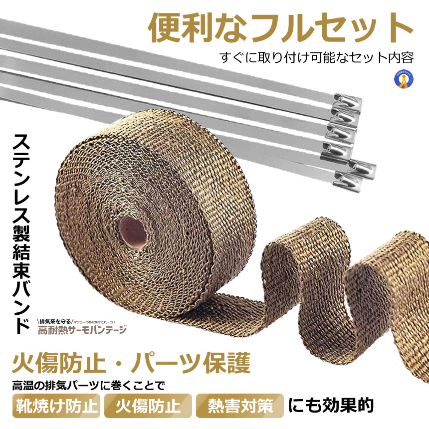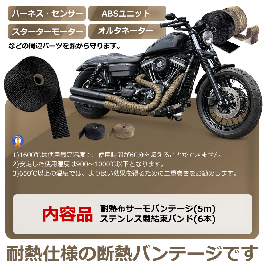 5個セット 耐熱布 サーモ バンテージ 高品質グラスファイバー 耐熱温度1600℃ エキマニ エキゾーストラップ STRAP