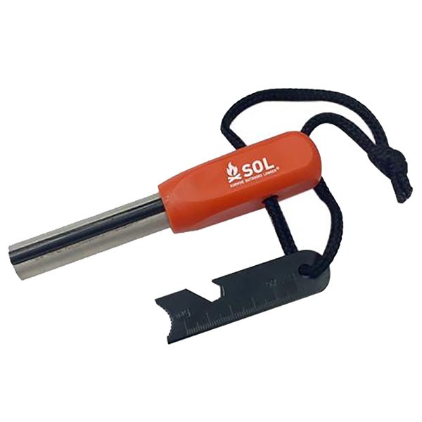過酷な状況でもこの1本があれば確実に着火することができるファイヤースターター。 スクレーパーでマグネシウムを削り約3,000℃の火花で着火することが出来ます。 着火用のティンダーはマグネシウムを採用していることで、より高温で燃焼し着火しやすくなっています。 大きな手でも使いやすいグリップで、ストライカーはボトルオープナーと5cmの定規になっています。