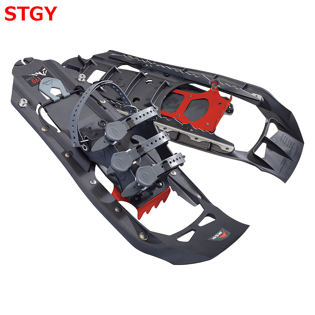オフトレイルからバックカントリーまで、あらゆる場所に対応できるMSRスノーシューのスタンダードモデルです。スノーシューに必要とされる機能をバランス良く備えました。一体成型したプラスチックのユニボディデッキは耐久性が高く、地形に合わせて適度にしなって追従します。平行に配置したスチール製のトラクションレールはグリップ力が高く、トラバース時の横ズレを防止します。登攀時にかかとを持ち上げ、つま先側に荷重をかけやすくすると同時にふくらはぎにかかる負担を軽減するテレベーターも装備しています。トライフィットバインディングは、あらゆるブーツを確実に固定できるラバーベルトのバインディング。ベルトの先端をタブ状にして、グローブをした手でもストレスなく操作できます。