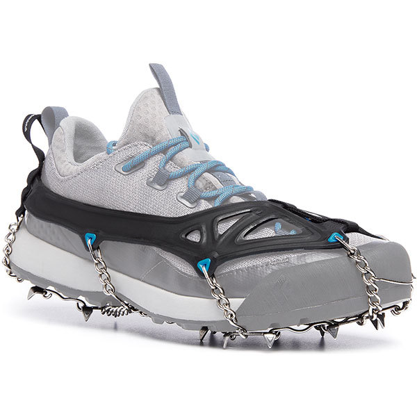 夏場のスクランブリングから冬場のトレイルランニングまで、幅広い用途に対応するトラクションデバイス。エラストマー製フルハーネスは汎用性が高く、様々なタイプのブーツに装着できます。14箇所のステンレス製スパイクは雪面、氷面をしっかりと捉えるとともに、岩や硬い路面での安定性を高めます。ヒールのウェビングループはスムーズな着脱をサポートし、識別性を高めます。