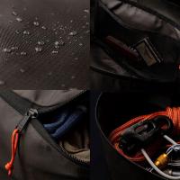 丈夫なリップストップ防水素材(CORDURAリップスットプナイロン)/フルシーム加工済/YKK止水ジッパー/軽量、コンパクト/小物入れにも使える収納できるメッシュケース付/持ちやすいトップハンドル/背面部分はハイドレーションのスペースを考慮した三日月形(パック内のデッドスペースをなくします。)/開けやすい長めのジッパータブ
