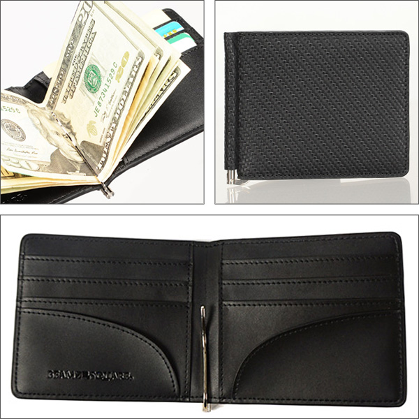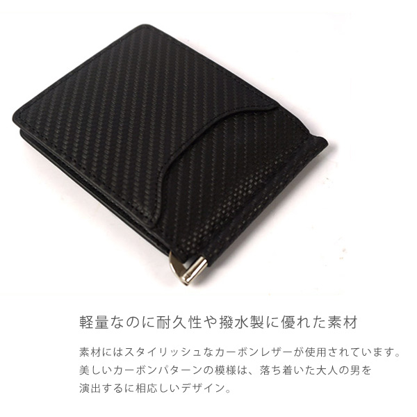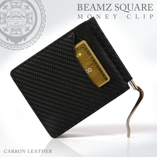 BEAMZ SQUARE マネークリップ 財布 カーボンレザー 札ばさみ 男性 メンズ ブラック