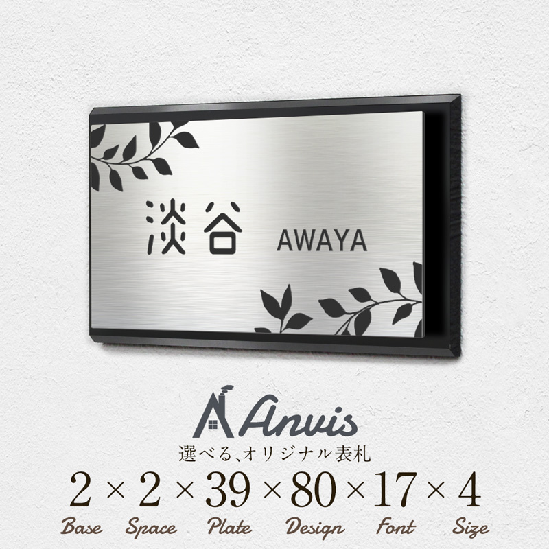 Anvis アンビス 表札 貼るだけ 両面テープ シール マンション 戸建て ポスト ルームプレート オフィスプレート 看板 ネームプレート 郵便受け オーダー オリジナル 台座付き ブラック ブラウン 光沢 艶あり