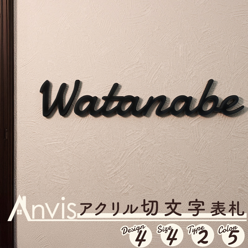 Anvis 切り文字 表札 貼るだけ 両面テープ付き 立体 英語 アルファベット 看板 日本製 アクリル ネーム サインプレート 戸建 マンション ポスト 屋外 おしゃれ