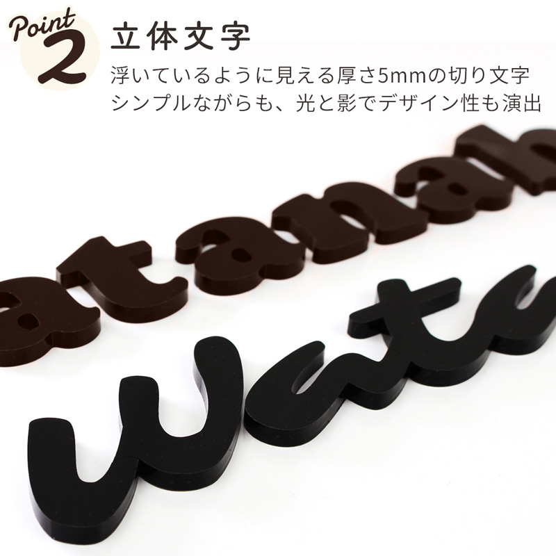 立体文字で浮いているように見える厚さ5mmの切り文字表札。