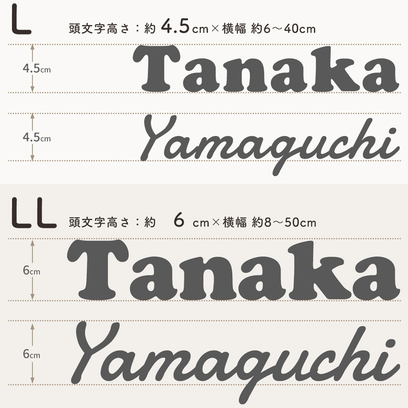 ・Lサイズ・LLサイズは文字数やフォントによっては宅配便でのお届けに変更となる場合があります