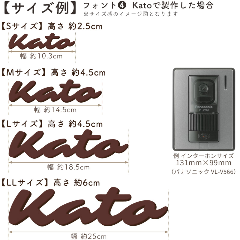 ■サイズ:サイズは4種類/基準は頭文字の高さとなり、横幅は文字数やフォントで変動します。厚み:5mm(全サイズ共通)