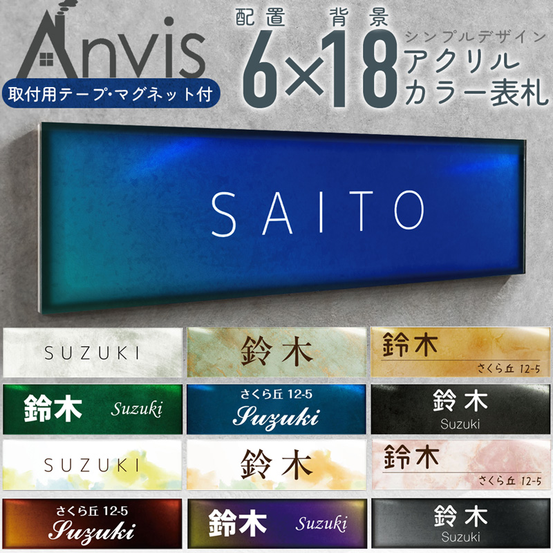 表札 戸建て マンション カラー 両面テープ マグネット付き シンプルデザイン 玄関 ポスト 長方形 貼るだけ 郵便受け 門柱 おしゃれ ストーン風 グラデーション