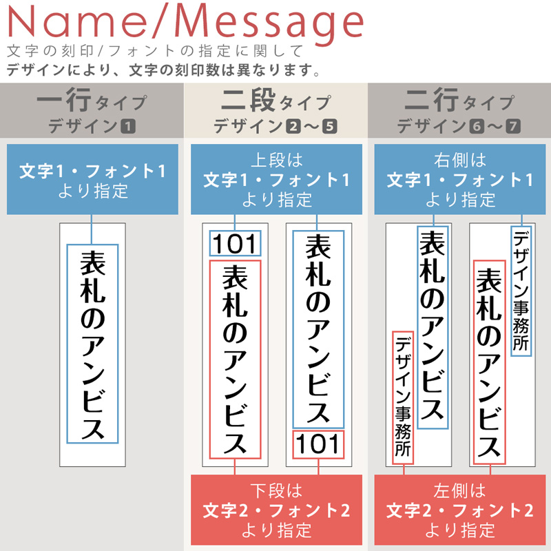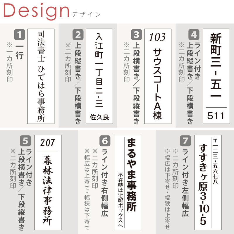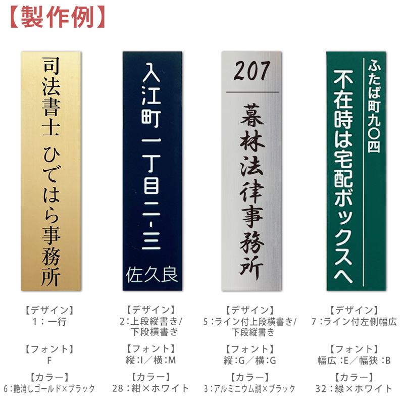 個人名や会社や店名などに対応できる縦型表札です。