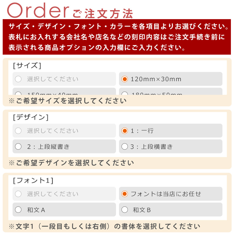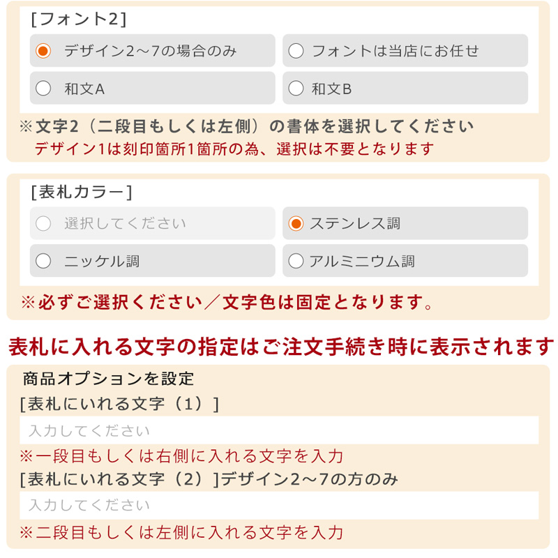 ※刻印ご希望内容はサイズ・デザイン・フォント・カラーをお選びいただき、買い物カゴに商品を追加後、ご購入手続き前に表示されます「商品オプション」にご記載お願いします。※