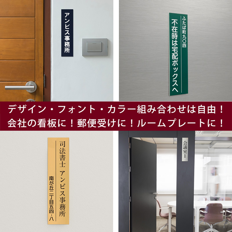表札 縦型 会社 法人 オフィス 番地 住所 プレート マンション 戸建て 事務所 ステンレス調 貼るだけ マグネット 両面テープ付き 彫刻 アクリル 木目調 門柱