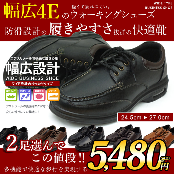 2足セット ウォーキングシューズ メンズ 幅広 4E 靴 ビジネスシューズ