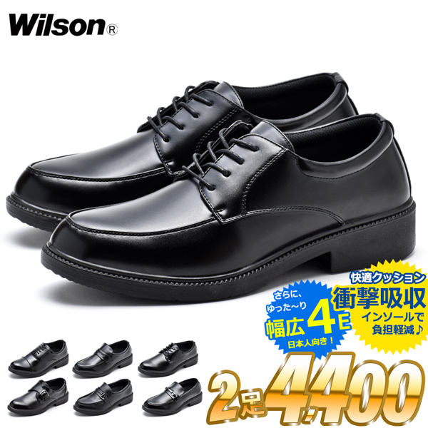 ビジネスシューズ 2足セット 4E メンズ 幅広 紳士靴 ストレートチップ Uチップ ローファー Wilson 30代 40代 50代 60代