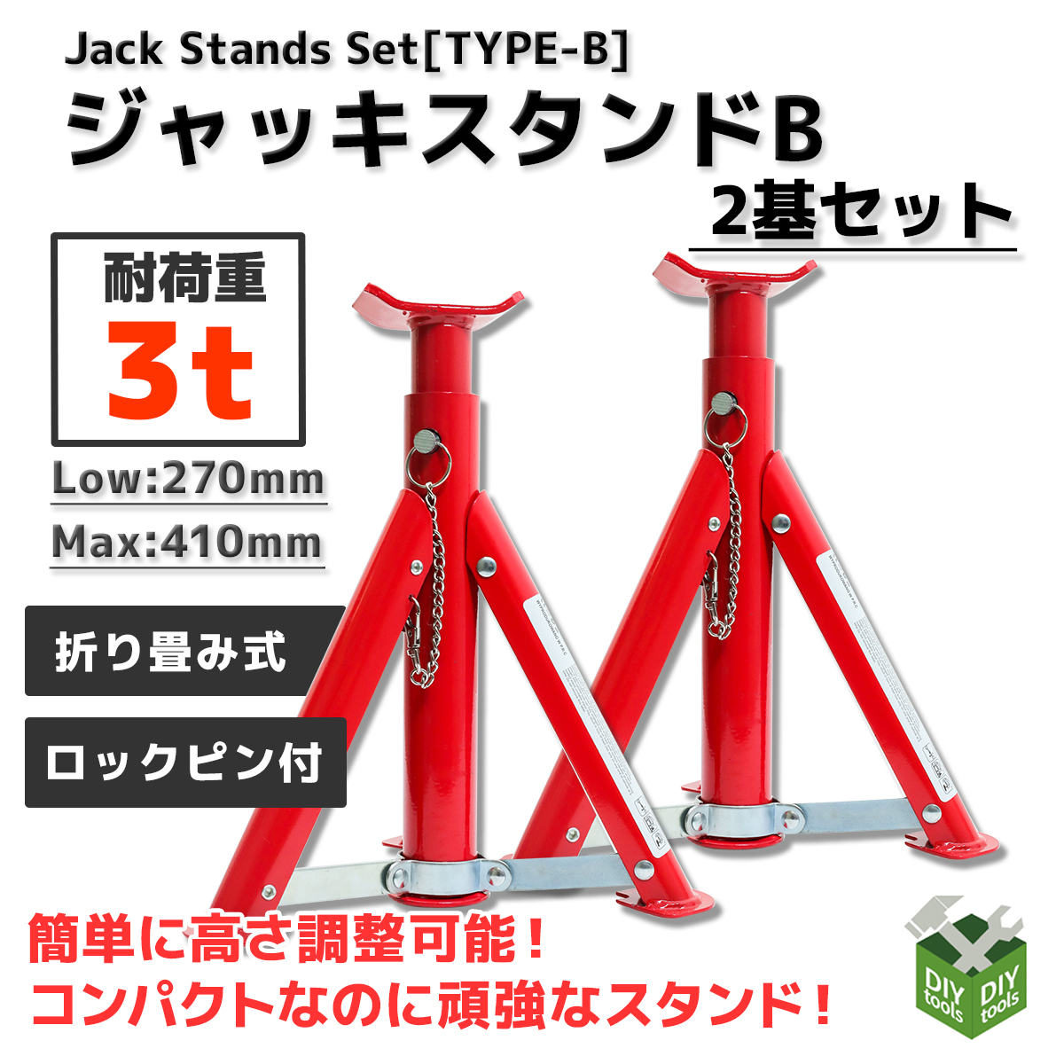 送料無料 ジャッキスタンドB 2基セット 耐荷重3t 折り畳み 折りたたみ タイヤ交換 マフラー交換 自宅 車 メンテナンス ジャッキアップ