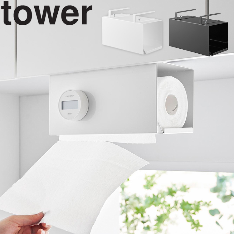 商品名:tower 片手でカット戸棚下キッチンペーパーホルダー タワー カバー付き S