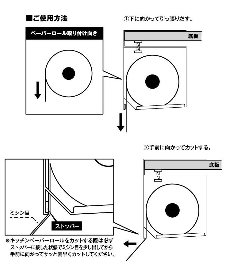 対応サイズ:直径約11×H23cm以内のロールタイプのキッチンペーパー・ペーパータオル・キッチンクロス