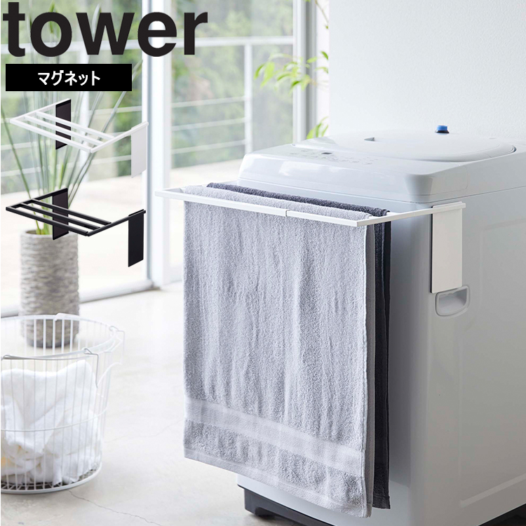 山崎実業 タワー マグネット tower マグネット伸縮洗濯機バスタオルハンガータワー 収納 磁石 ランドリー ホワイト ブラック 4874 4873