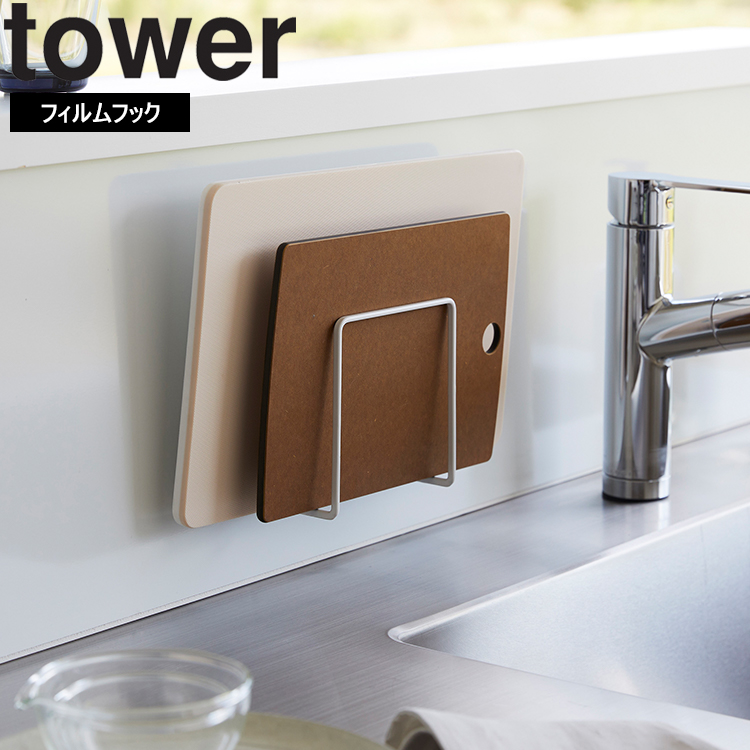 フィルムフックでお好みの位置に簡単取り付けできるまな板ホルダー。
