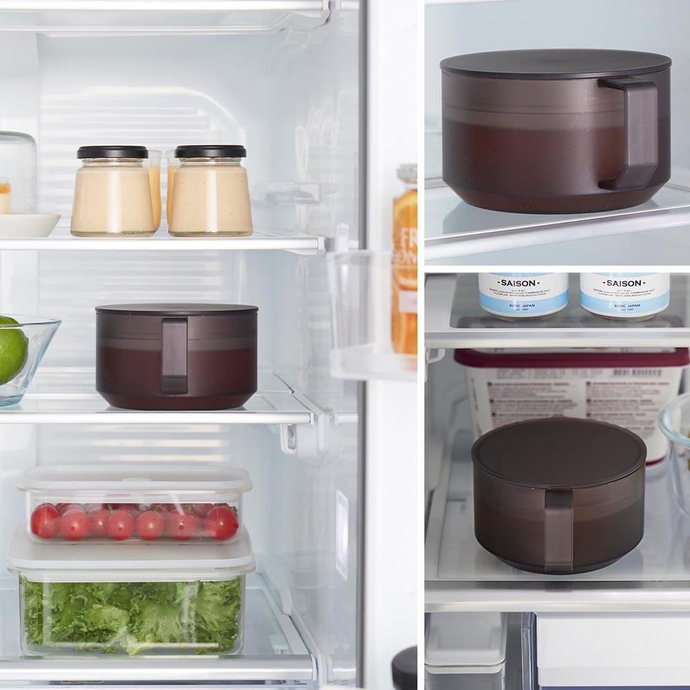 ポットの高さが7.9cmと低く、蓋がフラットだから冷蔵庫で保管しやすい形状です。