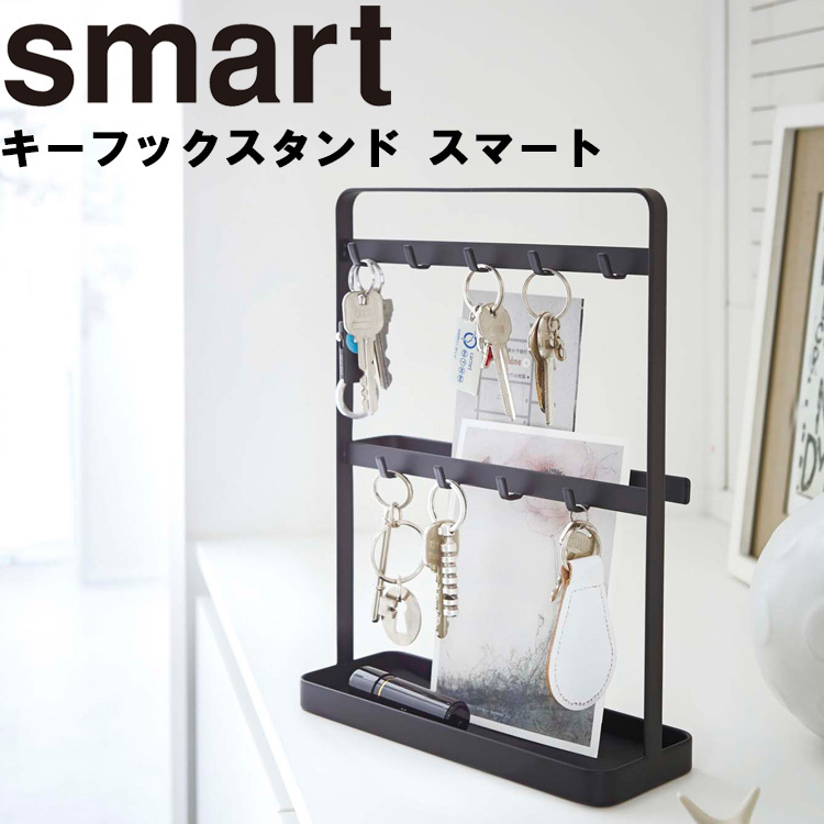 はがきや印鑑なども収納出来る便利なトレイ付きで上下2段式のキーフックスタンド。