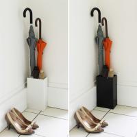 玄関の角にピッタリと収まるコンパクト角型かさ立て。