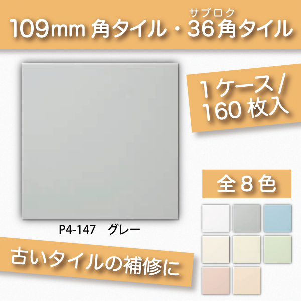 KYタイル / 36角 ブライト36 グレー 灰色 108角 110角 補修向け P4-147 109角 内装用壁タイル(ケース)