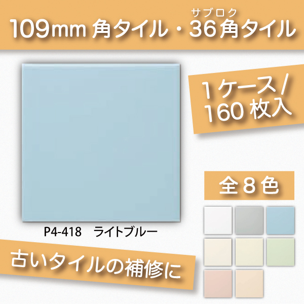 KYタイル / 36角 ブライト36 ライトブルー みずいろ 水色 108角 110角 補修向け P4-418 109角 内装用壁タイル(ケース)
