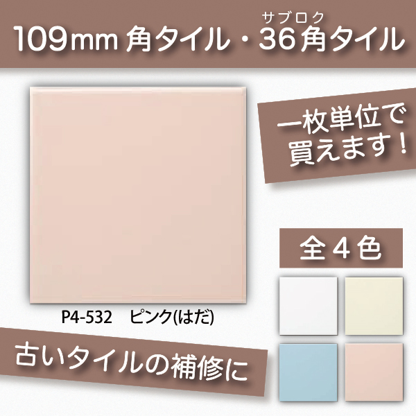 KYタイル / 109×109mm 36角 ブライト36 ピンク(はだ) 108角 110角 補修向け P4-532 109角 内装用壁タイル