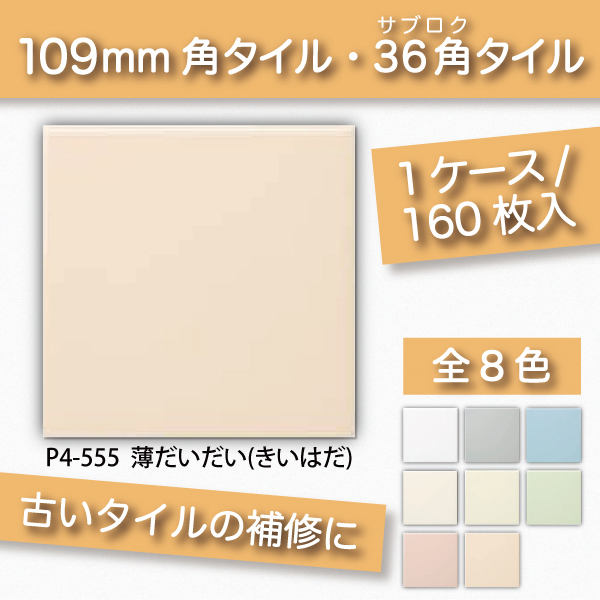 KYタイル / 36角 ブライト36 うすだいだい(きいはだ) 薄橙 オレンジ 108角 110角 補修向け P4-555 内装用壁タイル(ケース)