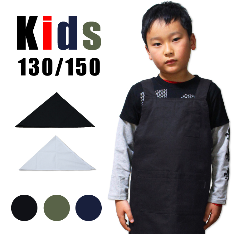 エプロン 三角巾 セット 子供 キッズ 120 130 150 男の子 女の子 無地 給食 爆買